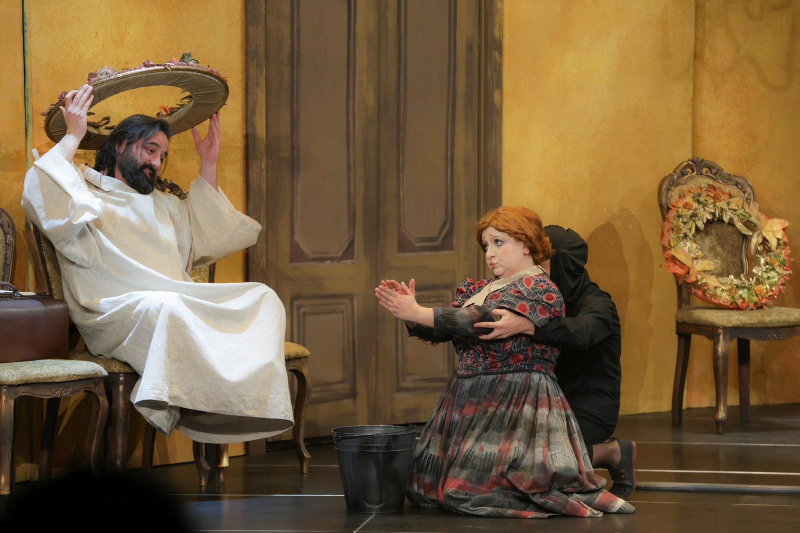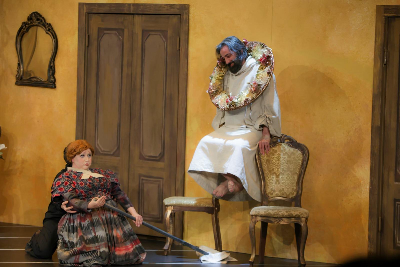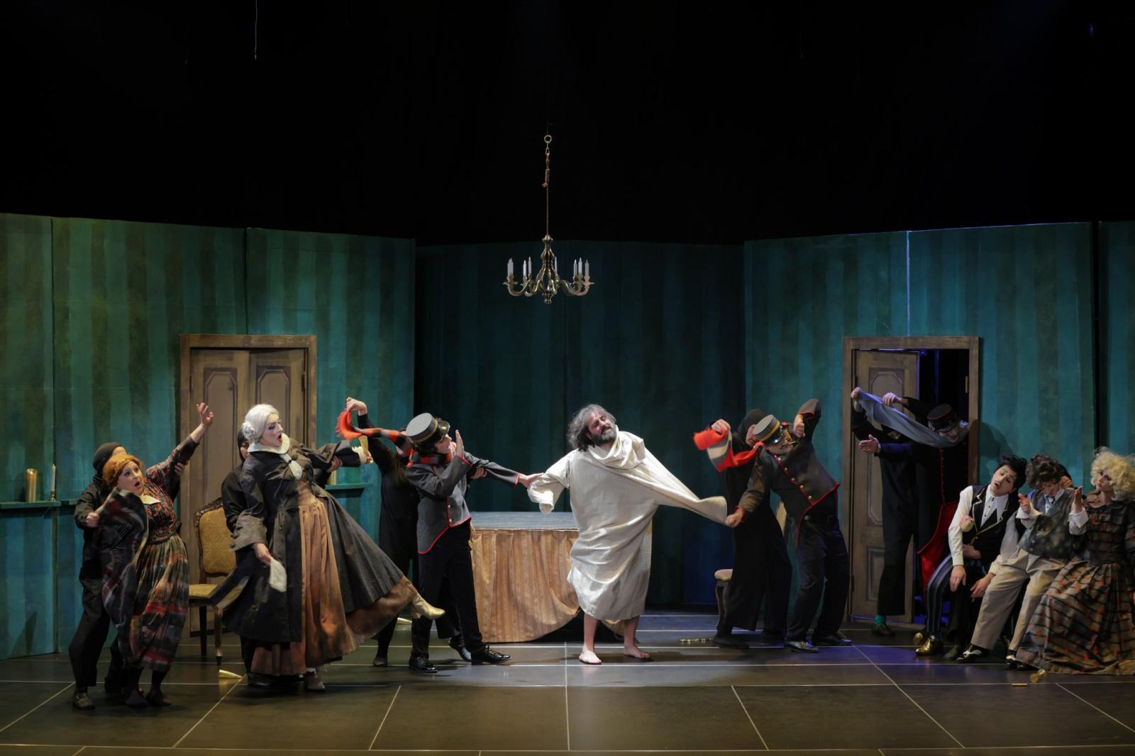 Եվ ահա, Նարինե Գրիգորյան բեմադրիչը բոլորովին նոր՝ հանճարեղորեն մտածված գաղափար, բեմավիճակ է ստեղծում, երբ հակադրությունը տարրալուծվում է մարիոնետների ու նրանց խաղավարների միջև՝ շատ ավելի խորքայնորեն, շատ ավելի վառ, շատ ավելի թատերայնորեն, շատ ավելի պատկերավոր ընդգծելով ժամանակի ու գործողության հակասությունը՝ միաժամանակ բարդագույն խնդիր դնելով դերասանների առջև, որոնք համազգայինցիները հաղթահարում են փառահեղորեն։